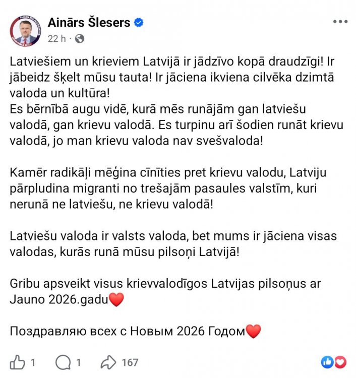 Jurkins Posted December 7, 2025 Share Posted December 7, 2025 pirms 8 stundām , jacobs teica: Nu un, ko tad mēs abi tagad darīsim? Mēs abi jau nu neko nevaram izdarīt.😉 Bet ir muļķīgi dziedāt slavas dziesmas tiesībām, kuru nav. pirms 7 stundām , AndrisBB teica: a kāds kas ir uzaudzis kur citur un labākajā gadījumā bijis reizi gadā uz nedēļu apciemot vecomāti tad nakuj viņam LV pilsonību? Lai sipās nakuj uz dajebkurieni. Link to comment Share on other sites More sharing options...
