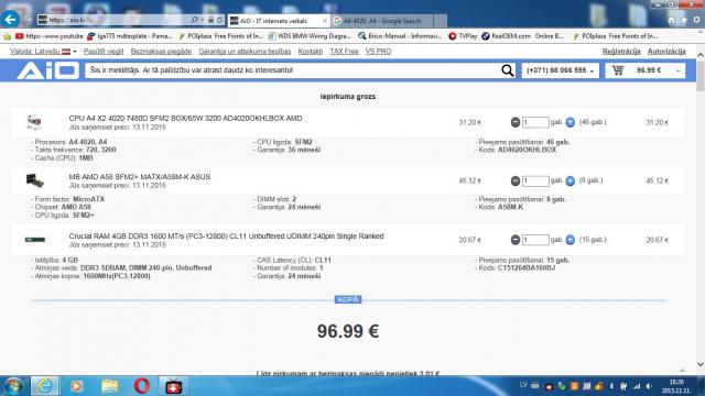 Guest Posted November 10, 2015 Share Posted November 10, 2015 (edited) mhm, procesors 200-220eur atkarībā cik jaudīgu i5 grib, plate tie paši 70-80eur, nav jāņem obligāti mITX, bet mATX, DDR4 rams 54eur Edited November 10, 2015 by Guest Link to comment Share on other sites More sharing options...