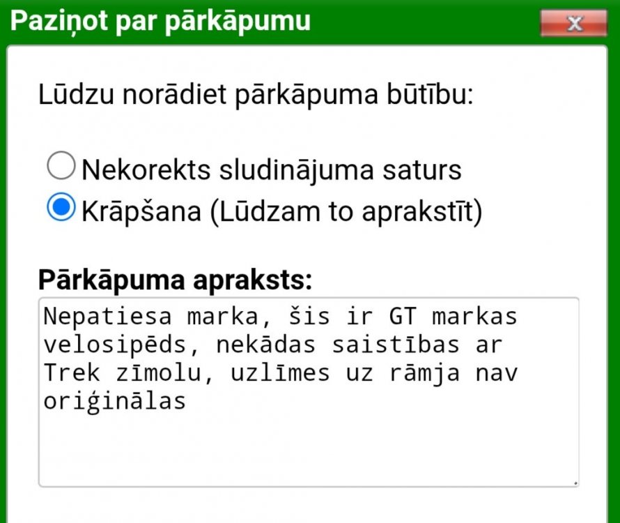 AndrisBB Posted November 23 Share Posted November 23 (edited) A ko tad GT logo no iznesuma nenoņēma? Tak viņi raksta ka ņem vecos velo, ganjau kāds tādu arī atstūma. Iemet ss gadījumā ja nu kāds nopērk, kurš tur ies tērēt laiku un naudu, lai tos logo noplēstu. Var tak ar huiņu nodarboties un meklēt sazvērestības kur viņu nav, ar ko tas Trek logo būs labāks par GT, tjipa pārdos par 5 eiro dārgāk? 😂 Tas taču tāpat ir kautkāds sarūsējis hlams. Edited November 23 by AndrisBB Link to comment Share on other sites More sharing options...